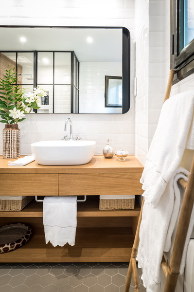 Se alicataron y solaron los baños con el mayor detalle y piezas cerámicas con formas divertidas y extrañas como escamas de pez o hexagonos. Construyendo en ambos baños mobiliario de carpintería diseñado por la clienta y una mampara de ducha con perfileria de hierro y cristal tal y como la clienta pidió.