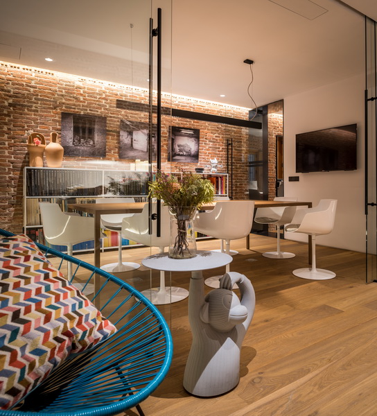 Otro de los puntos importantes de la obra fue la recuperación de todos los elementos originales, tales como muros de carga de ladrillo macizo y zocalo de granito, ventanales de madera de pino viejo, rejas de forja en su estado natural…